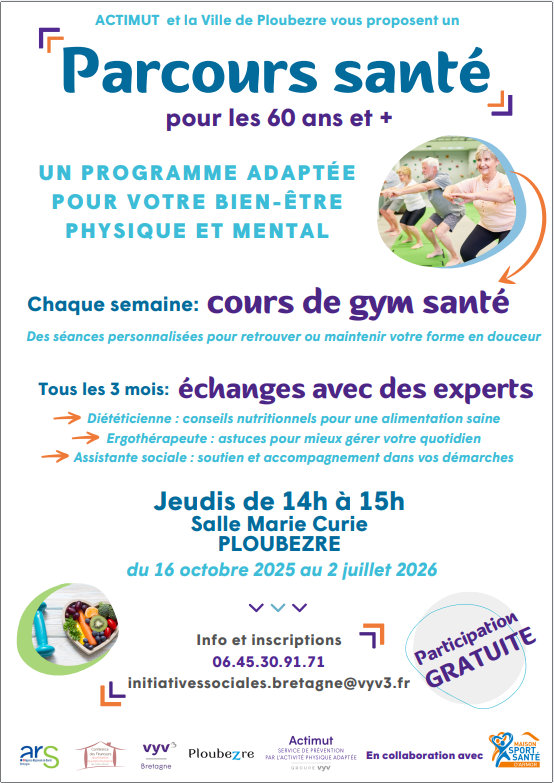 Atelier pour les 60 et plus, info et inscriptions au 06.45.30.91.71 ou par mail à initiativessociales.bretagne vyv3.fr