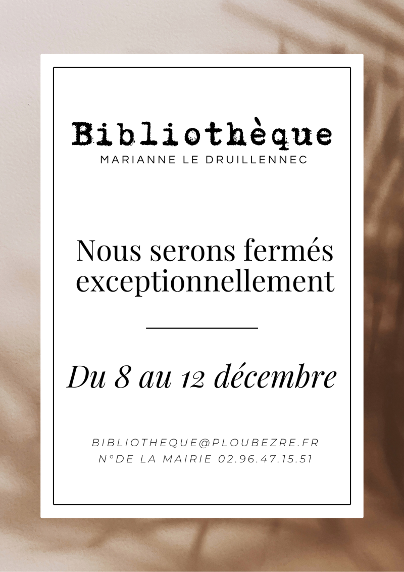 La bibliothèque sera exceptionnellement fermée du 8 au 12 décembre 2025.