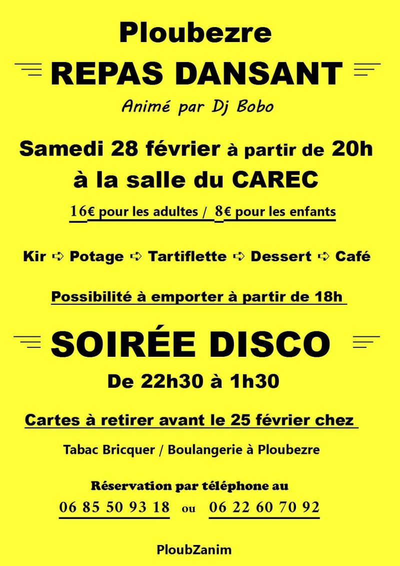 Accueil > Évènements / Manifestations > Ploubz’anim organise un repas dansant le samedi 28 février 2026
