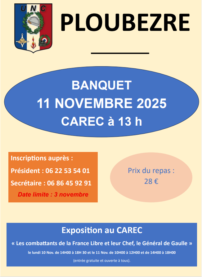 Venez découvrir une exposition gratuite dédiée aux Français libres et à leur emblématique chef, le Général de Gaulle, dans le contexte de la Guerre. Cette exposition se tiendra au Carec, avec des horaires d’accès suivants : le Lundi 10 novembre de 14h00 à 18h30 et le Mardi 11 novembre de 10h00 à 12h00 puis de 14h00 à 18h00. Ne manquez pas cette occasion de plonger dans l’histoire et de rendre hommage à ceux qui ont lutté pour la liberté. Nous vous attendons nombreux !